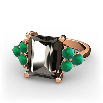 Dumanlı kuvars ve kök zümrüt 14 ayar rose altın yüzük