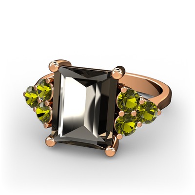 Dumanlı kuvars ve peridot 18 ayar rose altın yüzük