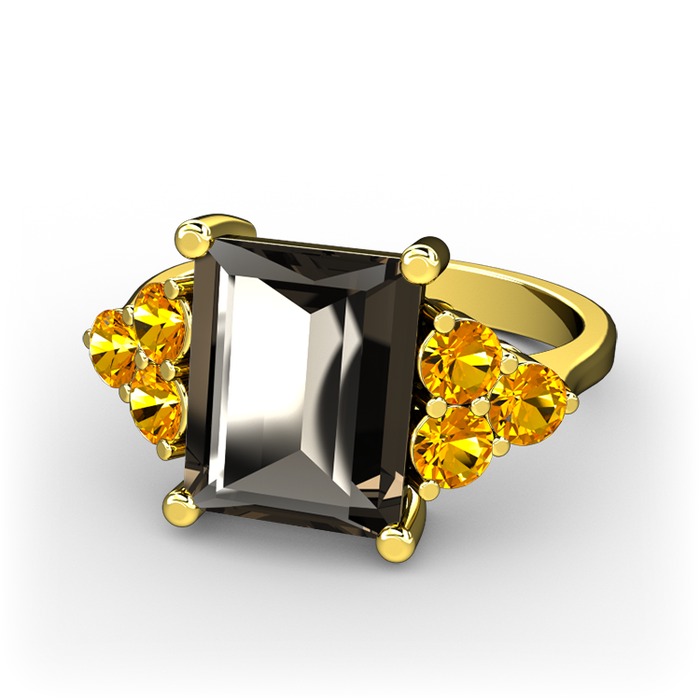 Dumanlı kuvars ve sitrin 925 ayar altın kaplama gümüş yüzük