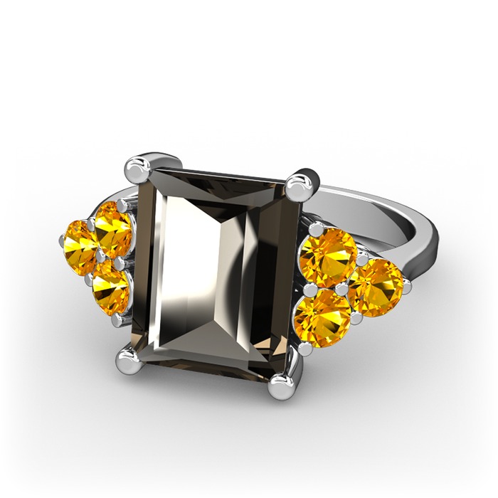Dumanlı kuvars ve sitrin 925 ayar gümüş yüzük