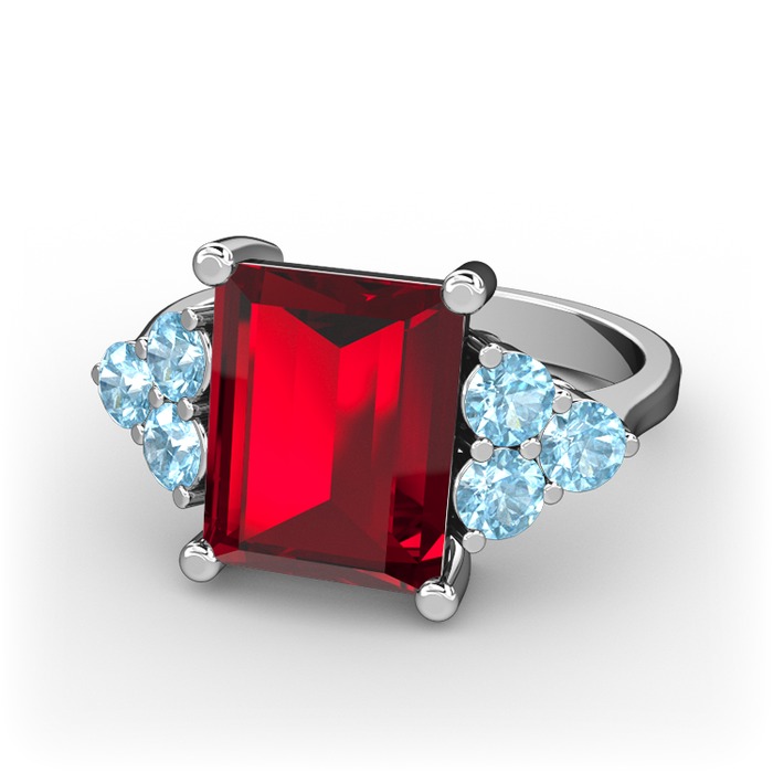 Garnet ve akuamarin 8 ayar beyaz altın yüzük