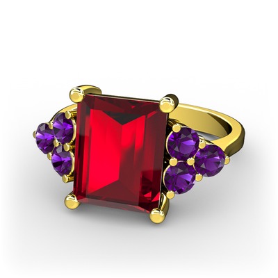 Garnet ve ametist 925 ayar altın kaplama gümüş yüzük