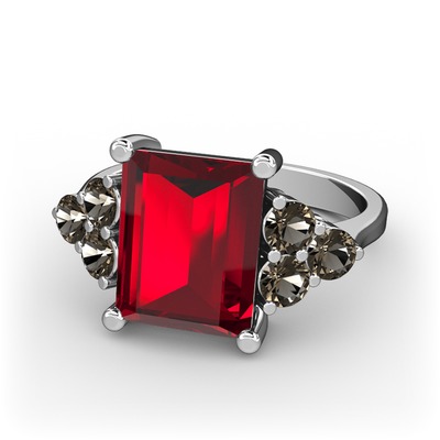 Garnet ve dumanlı kuvars 8 ayar beyaz altın yüzük