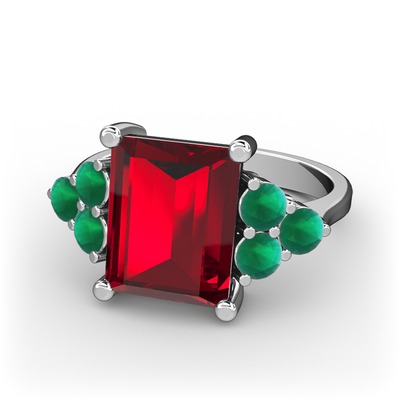 Garnet ve kök zümrüt 14 ayar beyaz altın yüzük