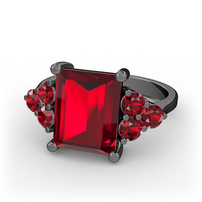 Garnet 925 ayar siyah rodyum kaplama gümüş yüzük