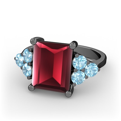 Kök yakut ve akuamarin 925 ayar siyah rodyum kaplama gümüş yüzük