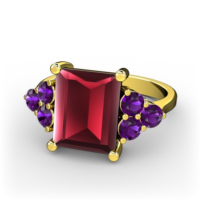 Kök yakut ve ametist 18 ayar altın yüzük