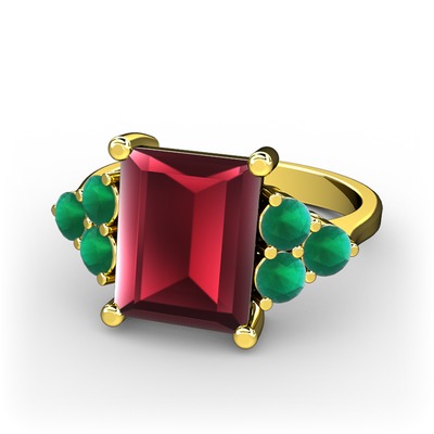 Kök yakut ve kök zümrüt 8 ayar altın yüzük