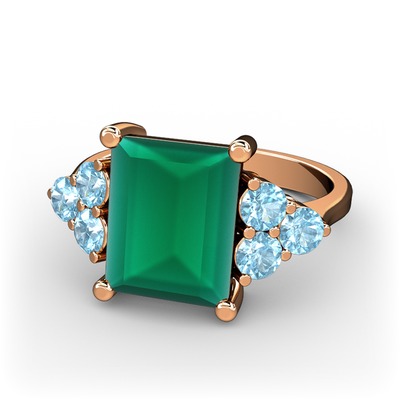 Kök zümrüt ve akuamarin 18 ayar rose altın yüzük