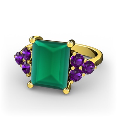Kök zümrüt ve ametist 8 ayar altın yüzük