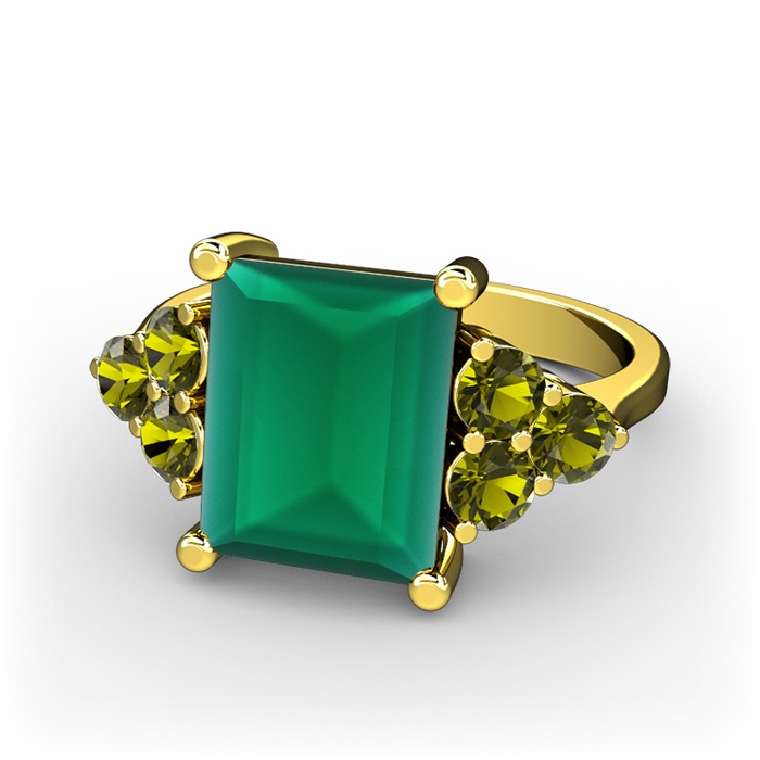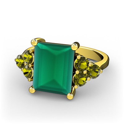 Kök zümrüt ve peridot 8 ayar altın yüzük
