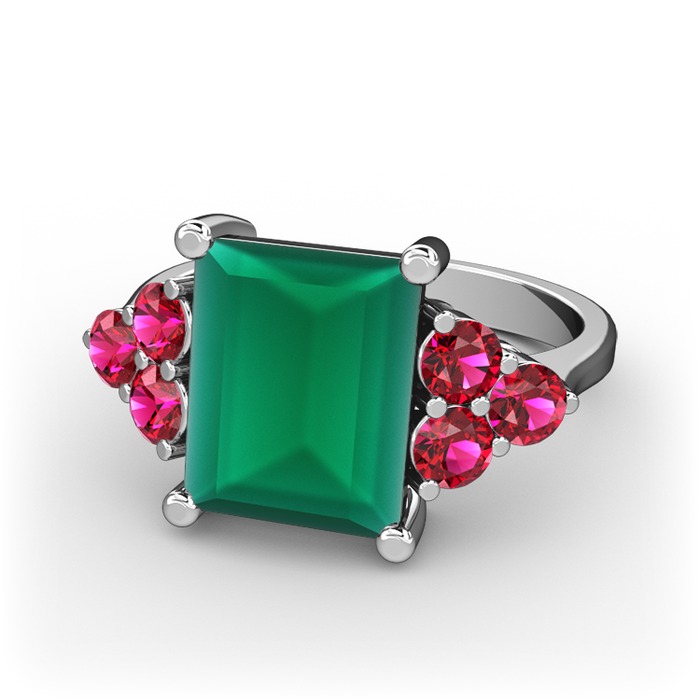 Kök zümrüt ve rodolit garnet 14 ayar beyaz altın yüzük