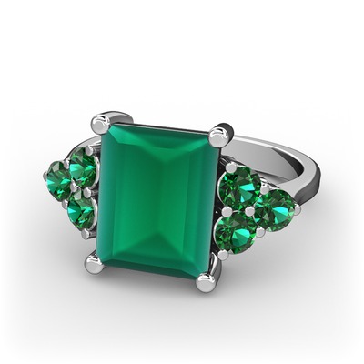 Kök zümrüt ve yeşil kuvars 8 ayar beyaz altın yüzük