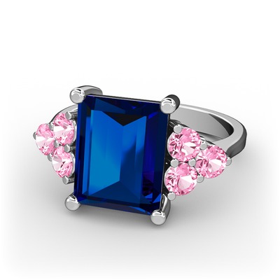 Lab safir ve pembe kuvars 18 ayar beyaz altın yüzük