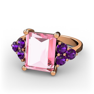 Pembe kuvars ve ametist 18 ayar rose altın yüzük