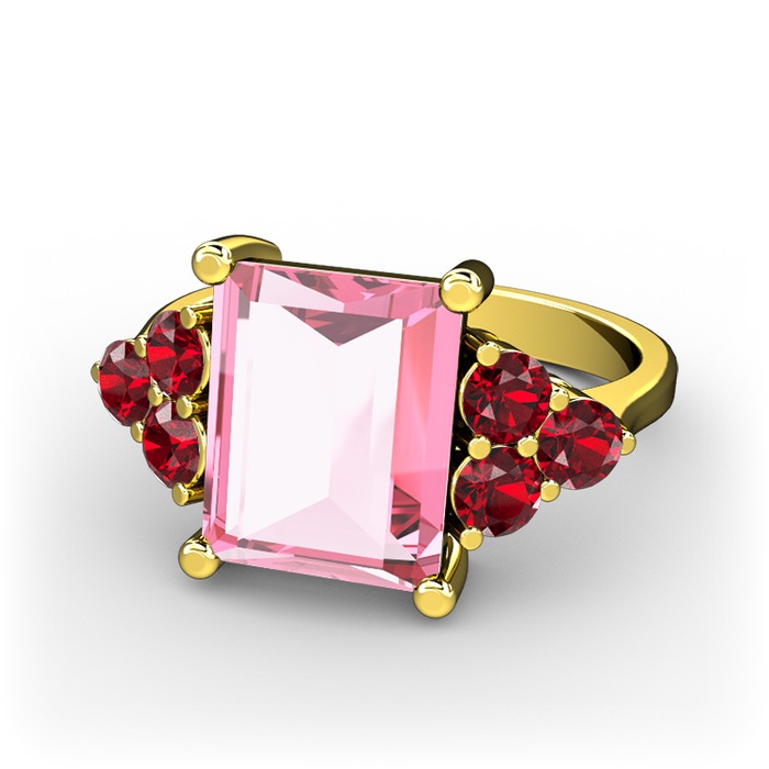 Pembe kuvars ve garnet 8 ayar altın yüzük