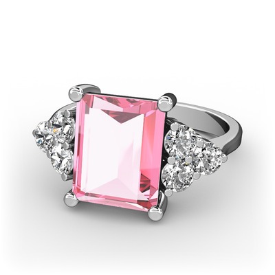 Pembe kuvars ve pırlanta 8 ayar beyaz altın yüzük (0.48 karat)