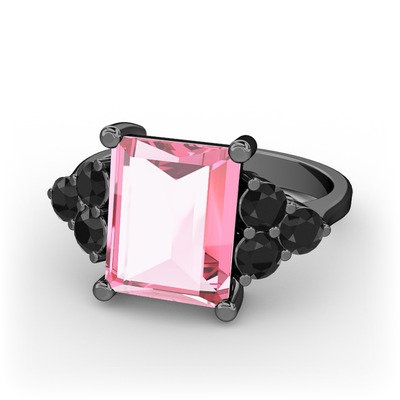 Pembe kuvars ve siyah zirkon 925 ayar siyah rodyum kaplama gümüş yüzük