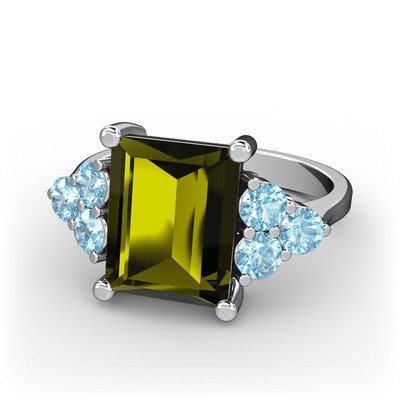 Peridot ve akuamarin 8 ayar beyaz altın yüzük