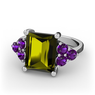 Peridot ve ametist 8 ayar beyaz altın yüzük