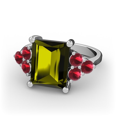 Peridot ve kök yakut 14 ayar beyaz altın yüzük