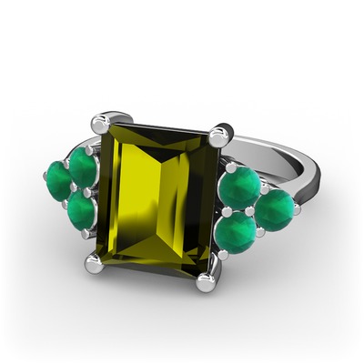 Peridot ve kök zümrüt 8 ayar beyaz altın yüzük
