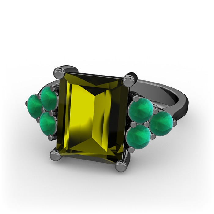 Peridot ve kök zümrüt 925 ayar siyah rodyum kaplama gümüş yüzük