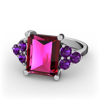 Rodolit garnet ve ametist 8 ayar beyaz altın yüzük