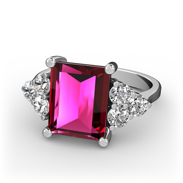 Rodolit garnet ve pırlanta 18 ayar beyaz altın yüzük (0.48 karat)