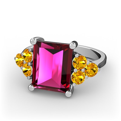 Rodolit garnet ve sitrin 14 ayar beyaz altın yüzük