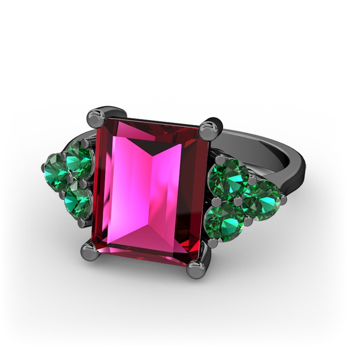 Rodolit garnet ve yeşil kuvars 925 ayar siyah rodyum kaplama gümüş yüzük