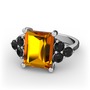 Sitrin ve siyah zirkon 14 ayar beyaz altın yüzük