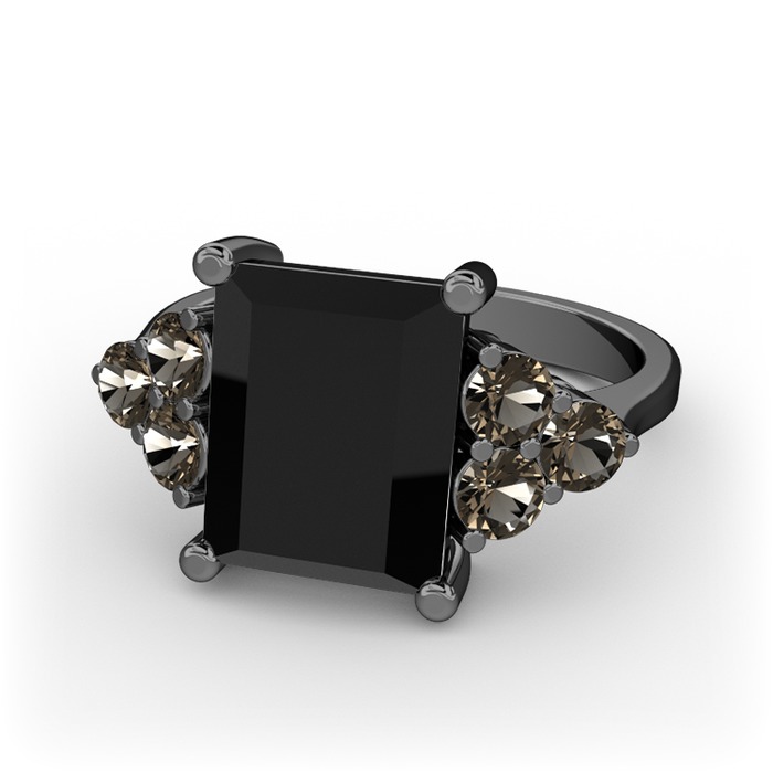 Siyah zirkon ve dumanlı kuvars 925 ayar siyah rodyum kaplama gümüş yüzük