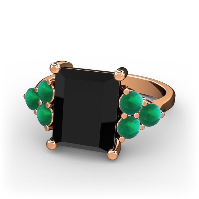 Siyah zirkon ve kök zümrüt 14 ayar rose altın yüzük