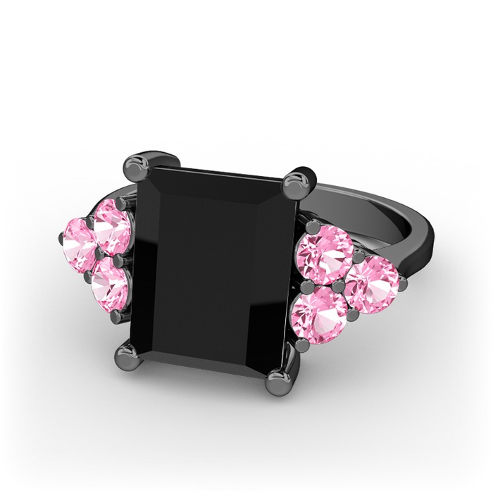 Siyah zirkon ve pembe kuvars 925 ayar siyah rodyum kaplama gümüş yüzük