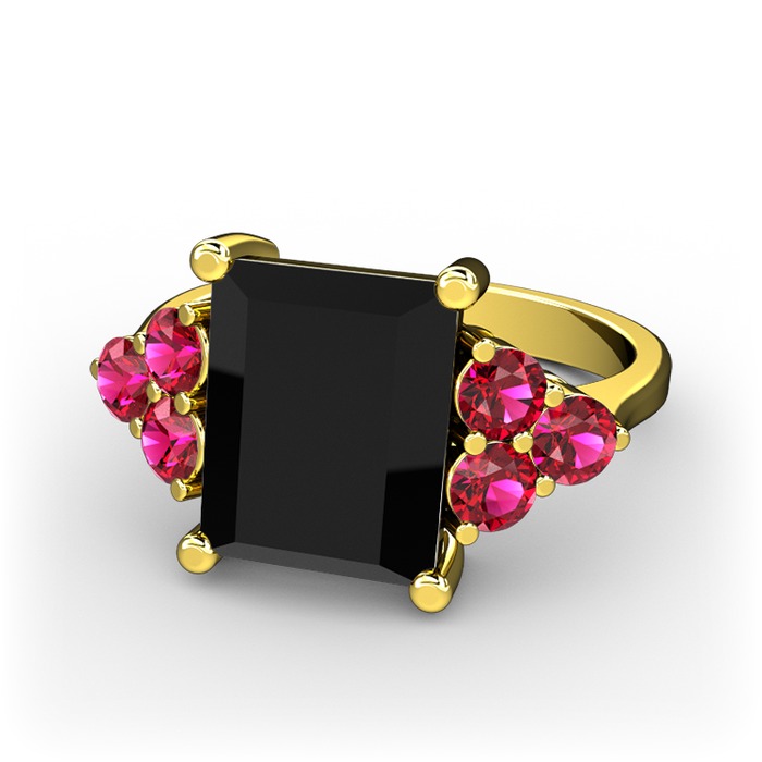 Siyah zirkon ve rodolit garnet 18 ayar altın yüzük
