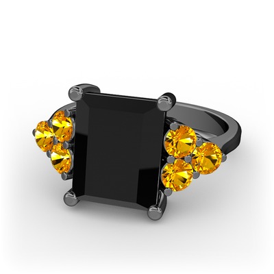 Siyah zirkon ve sitrin 925 ayar siyah rodyum kaplama gümüş yüzük
