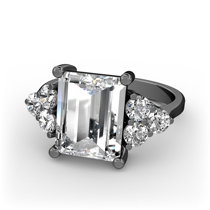 Swarovski ve pırlanta 925 ayar siyah rodyum kaplama gümüş yüzük (0.48 karat)