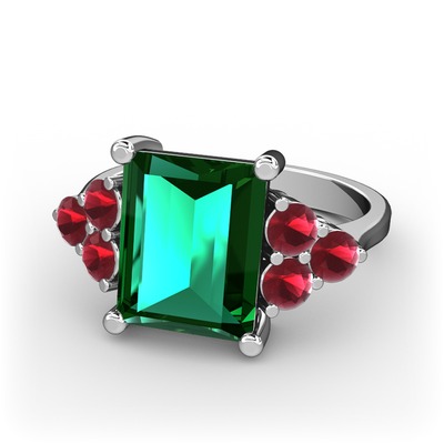 Yeşil kuvars ve kök yakut 14 ayar beyaz altın yüzük