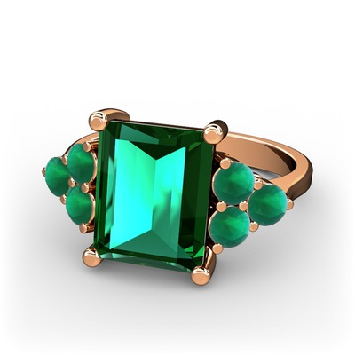 Yeşil kuvars ve kök zümrüt 14 ayar rose altın yüzük