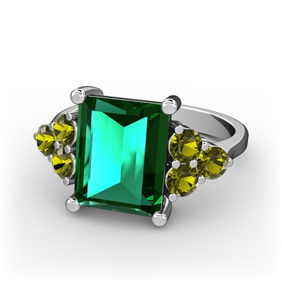 Yeşil kuvars ve peridot 18 ayar beyaz altın yüzük