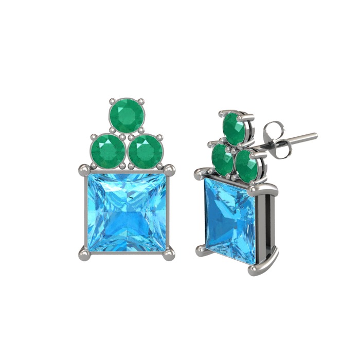 Akuamarin ve kök zümrüt 8 ayar beyaz altın küpe
