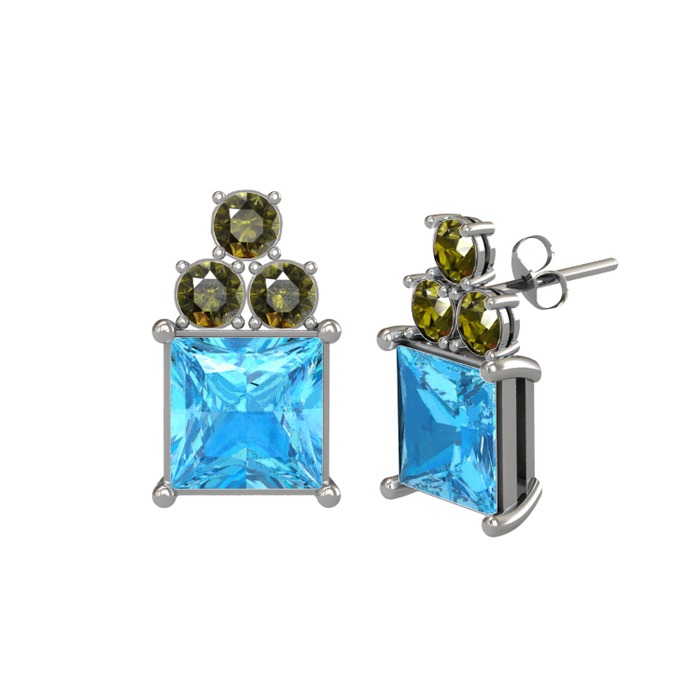 Akuamarin ve peridot 925 ayar gümüş küpe
