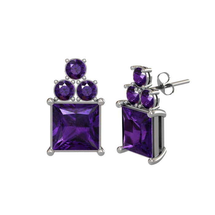 Ametist 8 ayar beyaz altın küpe