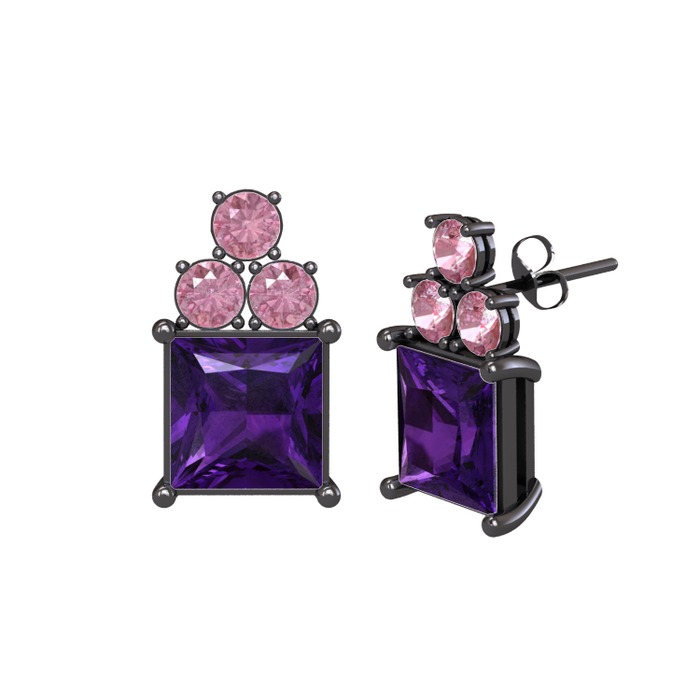 Ametist ve pembe kuvars 925 ayar siyah rodyum kaplama gümüş küpe