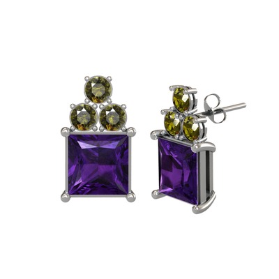 Ametist ve peridot 925 ayar gümüş küpe