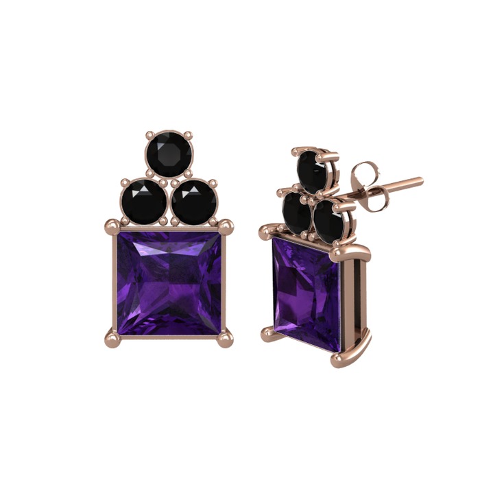 Ametist ve siyah zirkon 8 ayar rose altın küpe