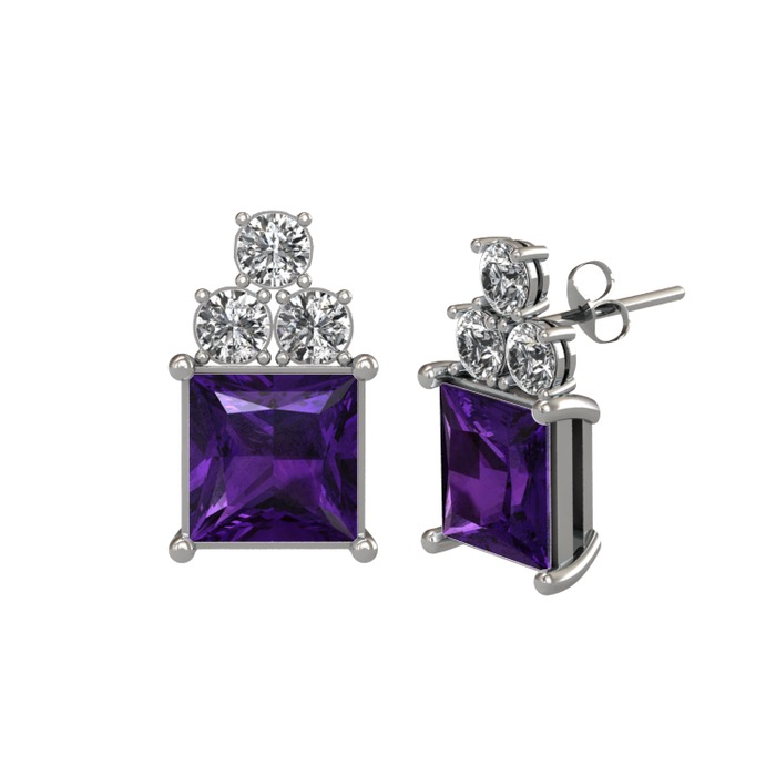 Ametist ve swarovski 14 ayar beyaz altın küpe