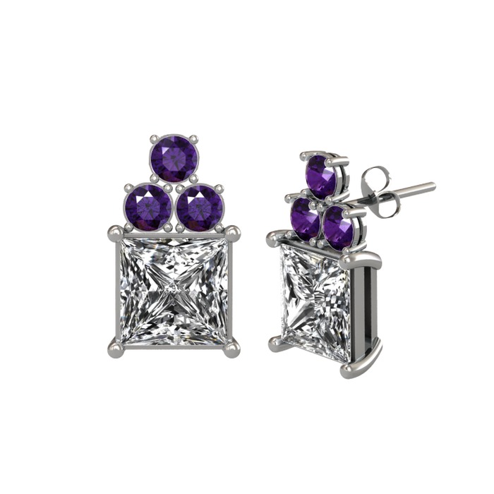 Beyaz zirkon ve ametist 925 ayar gümüş küpe
