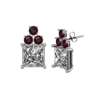 Beyaz zirkon ve kök yakut 14 ayar beyaz altın küpe